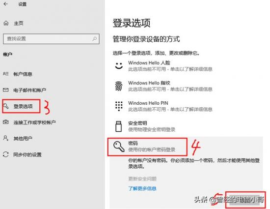 方法1:找到开始菜单设置→账户→找到你的电脑账户→登录选项→密码→添加→创建密码→按提示下一步,直到完成。