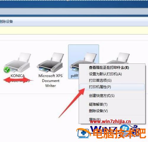 3、在准备共享的打印机上,我们点击右键-选择打印机属性。
