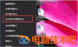 1、在桌面开始菜单中击右键,在弹出的菜单中选择“以管理员身份运行命令行窗口”页面。