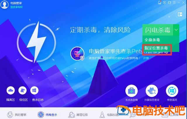 2.然后将U盘与电脑连接,打开腾讯电脑管家,点击病毒查杀,选择指定位置查杀,即可选择查杀U盘位置,立即修复U盘无法格式化的问题。