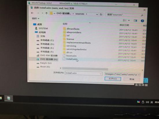 10、选择sources选择文件夹后install.win文件,再按打开