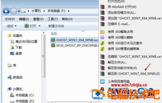 1、下载win7镜像文件iso镜像到本地,不要放桌面或C盘,右键使用WinRAR等工具解压出来;