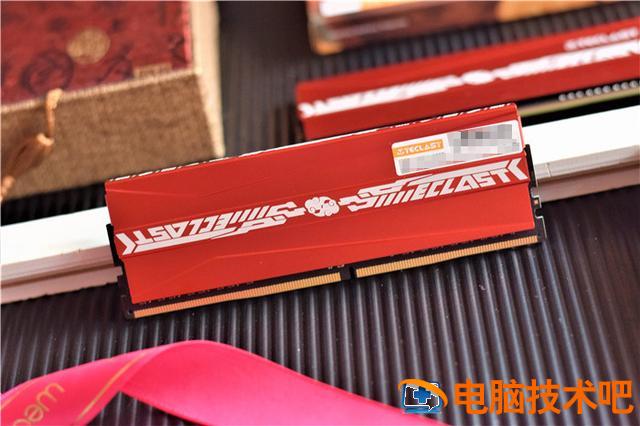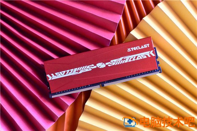 台电腾龙G40内存自带大红色的散热马甲,马甲采用强化铝合金材质,搭配导热背胶,更加有利于散热。马甲的正面中央位置设计有中国风设计的台电品牌LOGO,起到了很好的点缀作用。