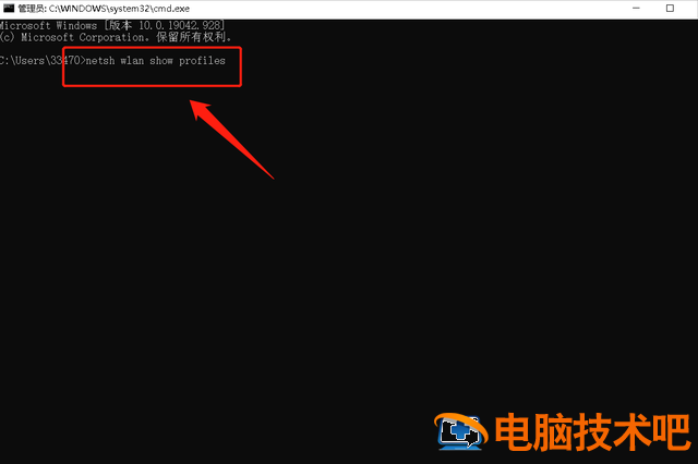 二、输入命令直接输入命令提示符的输入界面netsh wlan show profiles这个命令。如下图: