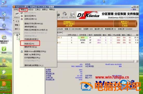 3、如果需要分区,双击分区工具DiskGenius,点击【硬盘】—【快速分区】;