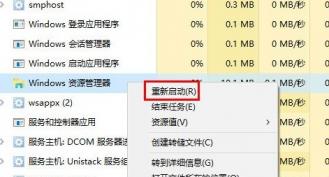 4、按下Ctrl+shift+esc打开任务管理器,找到Windows资源管理器,右击选择重新启动即可。