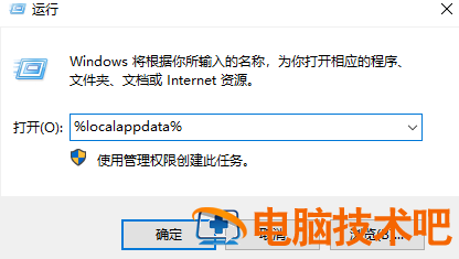 2、按下Win键+R键,输入 %localappdata%,点击确定。