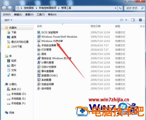 3、在打开的界面中双击windows内存诊断。
