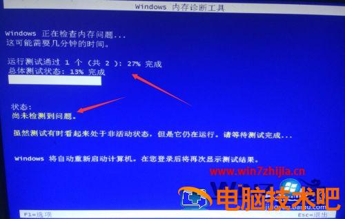 5、电脑重启后,自动进入检测界面检测,等待检测完成,便会提示检测结果。