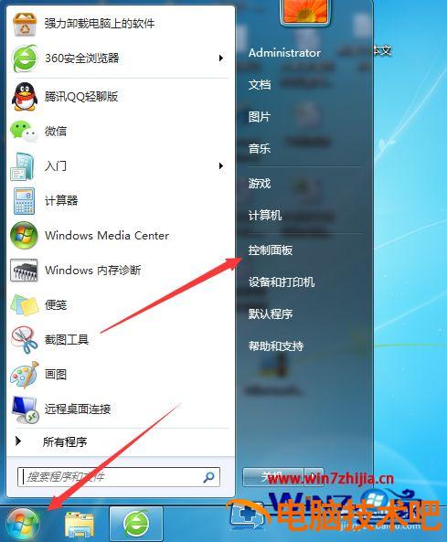 1、鼠标点击开始菜单,点击控制面板。