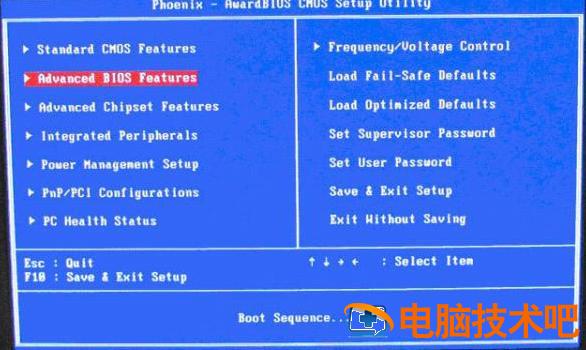 上图1-1:开机按住Del键进入到该电脑的BIOS设置界面,然后选择高级BIOS设置:Advanced BIOS Features。