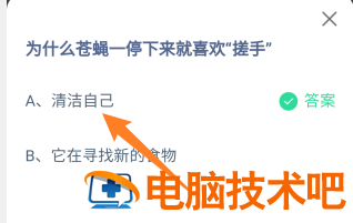 解析:苍蝇脚部的味觉和触觉感受器比其他部位多,为了帮助更好的分辨食物,所以清理的频率更高,于是常看到它们在搓动脚部。