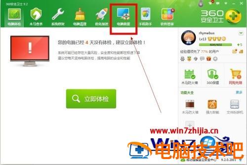 2、如果没有提示的话,你可以打开360安全卫士,选择“电脑救援”选项也可以!
