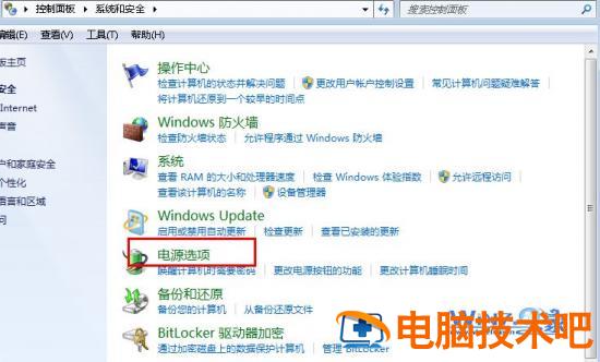 3、接着在弹出来的系统和安全界面中继续点击“电源选项”项;