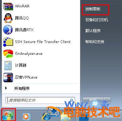 1、首先打开开始菜单,然后选择控制面板选项打开控制面板;