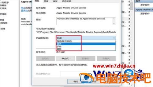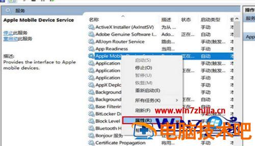 4、右键单击“Apple Mobile Device Service”,选择“属性”。