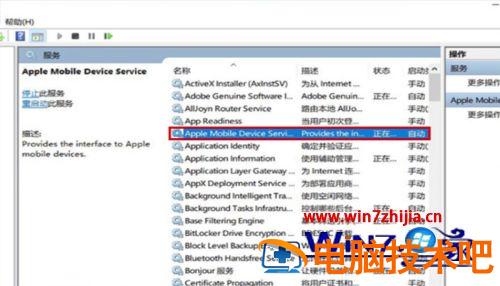 3、然后点开“服务”,查看“Apple Mobile Device Service”是否打开。