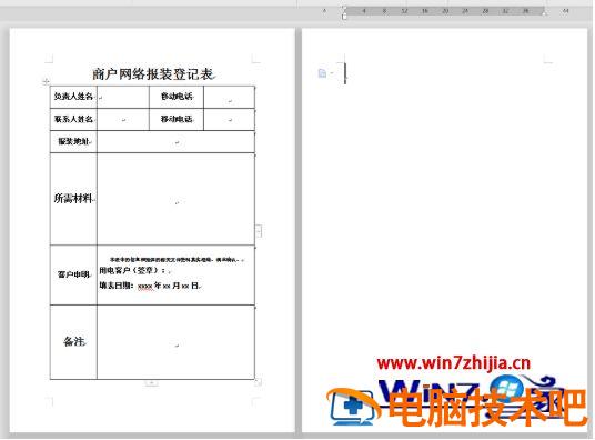 1、这张“商户网络报装登记表”,第一页有我需要的内容了,可后面多出来了一页空白页,按下(Backspace)退格键也删除不了;