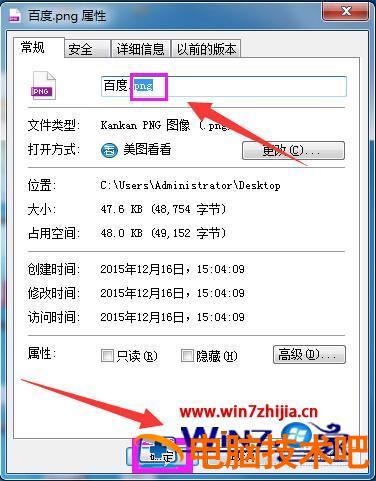 2、打开该图片的属性窗口,如下图点击选择该图片的扩展名png。