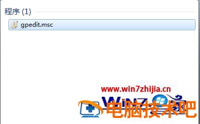 1、在“开始”菜单的搜索框输入指令gpedit.msc,回车打开Win7系统的组策略编辑器。
