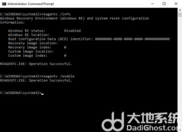 3. 如果提示已禁用,需输入“reagentc /enable”可以重新启用。