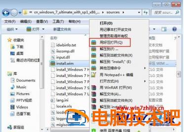 1、下载安装【好压压缩软件】,选择wim文件,比如install.wim,右键点击【用好压打开】”;