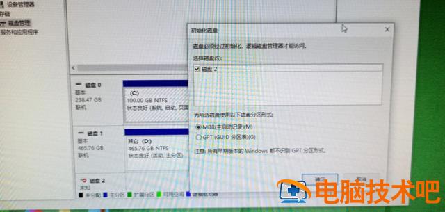 把硬盘拆下来挂到别的电脑上,在磁盘管理提示需要初始化磁盘。