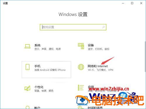 3、然后我们进入设置后,点击网络和Internet;