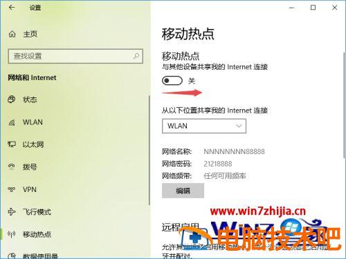 5、然后我们将移动热点的开关向右滑动;