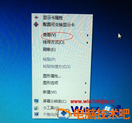 2、找打查看,鼠标放在上面,会看到显示桌面图标。