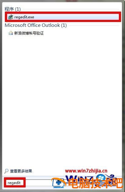 7、如果上述步骤操作不行,请点击“开始”,在输入框输入regedit,点击列表上面的regedit.exe;