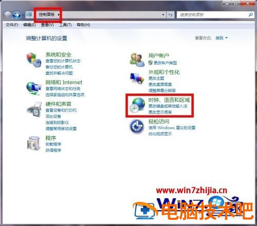 3、在“时钟、语言和区域”选择“更改键盘或其它输入法”;