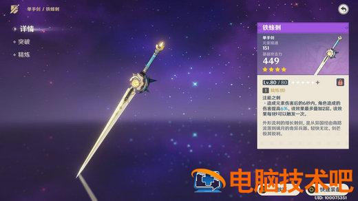 铁蜂刺应该是这三把武器里最好获得的一把,满级510的面板,165的元素精通副词条。