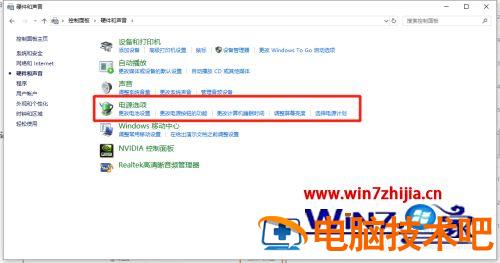 5、在“硬件和声音”界面中,选择“电源选项”设置。