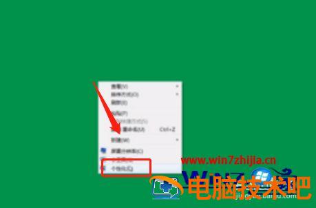 1、首先我们需要打开电脑,然后我们在桌面右击出现新的下拉框中点击,直接进入“个性化”。