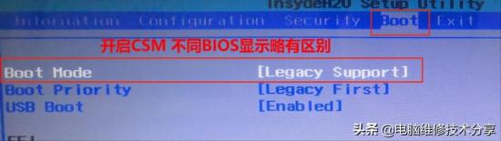 打开兼容支持模式(CSM)或开启Legacy引导模式