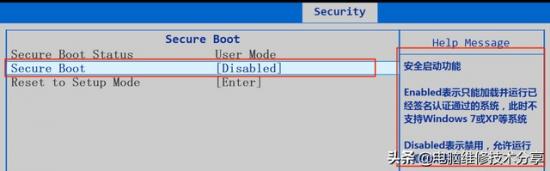 关闭安全启动模式