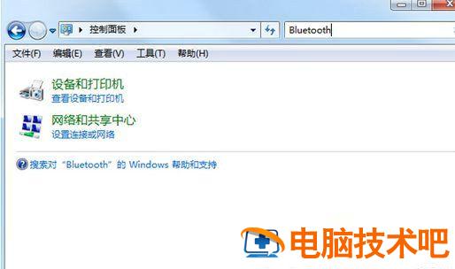 1、打开win7系统控制面板,在右上角搜索框里输入Bluetooth;