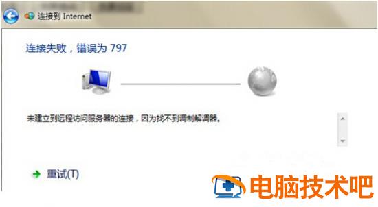 错误797这个故障一般是因为电脑adsl moden连接设备未找到引起的,导致在创建连接拨号的时候,创建了一个错误连接。