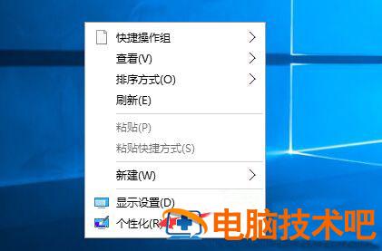 首先右键点击桌面空白处,选择个性化。