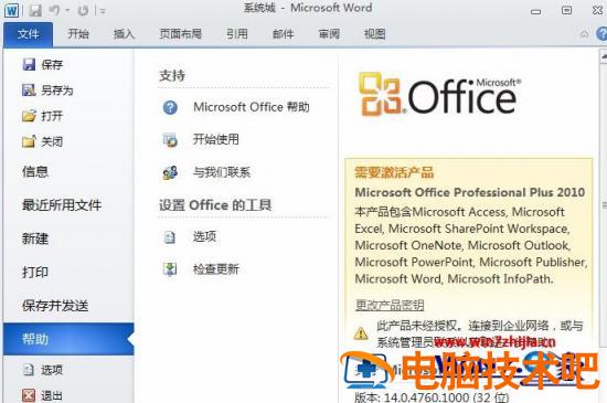 Office2010零售版密钥激活步骤:打开任意的office2010组件,比如word,点击左上角文件—帮助—更改产品密钥