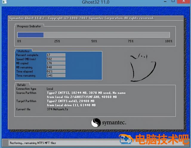 进入pe以后,装载工具自动打开并自动加载存储在u盘中的系统镜像文件