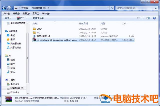 我们打开系统镜像文件所在的文件夹,将镜像文件复制到制作的u深度启动盘中