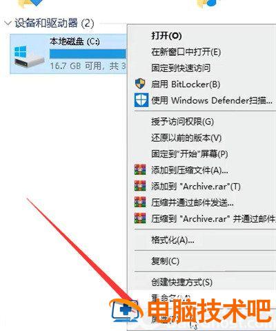 1、首先可以使用系统自带的磁盘清理对c盘进行清理。打开“此电脑”,鼠标右键单击c盘,选择“属性”;