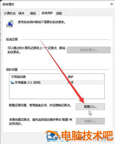 3、在打开的“系统属性”页面,点击”系统保护“中的”配置;