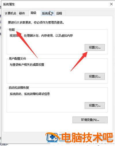 1、有可能时系统的虚拟内存太大,占用了c盘的空间。我们可以继续来到“系统属性”界面,然后点击“高级”,点击“性能”下的“设置”;