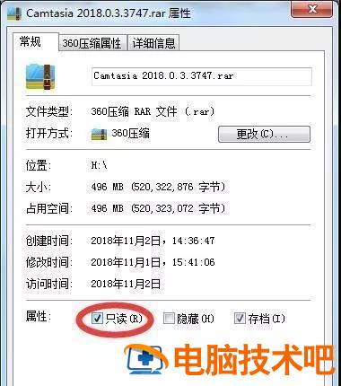 2.杀毒后,让我们看看文件是否设置为只读。如果它像图片中的那样被钩住,我们可以点击它