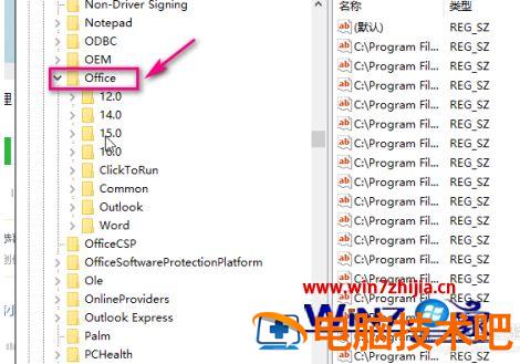 2、在注册表中,依次展开HKEY_CURRENT_USER-》Software-》Microsoft-》Office