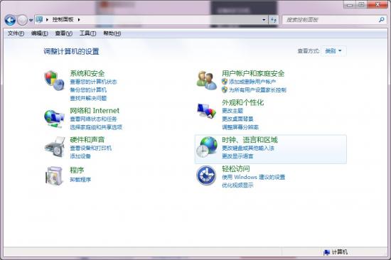 首先在控制面板中点击时钟、语言和区域选项。