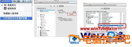 4、输入源快捷键设置 :右击输入法图标——打开语言与文本偏好设置——选择输入源——键盘快捷键——键盘和文本输入——选择上一个输入源或者下一个输入源。